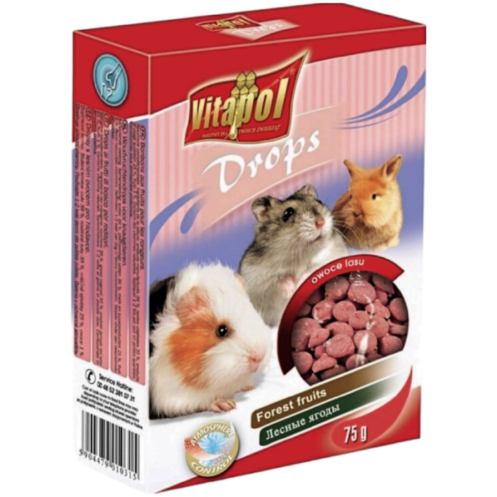 ОПИС: Корм для гризунів Vitapol Forest Fruits Drops дропси лісові ягоди є високоякісним продуктом, розробленим спеціально для гризунів. Ці дропси мають призначену форму та розмір для простого одержання та споживання гризунами. Корм містить натуральні інгредієнти, зокрема лісові ягоди, які забезпечують смачний та здоровий досвід годування.