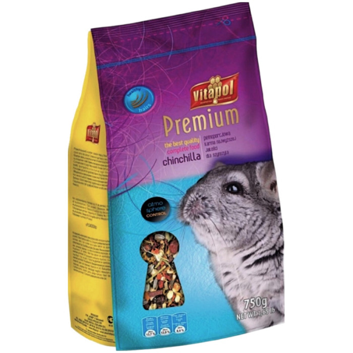 ОПИС: Vitapol Premium 750 г - це високоякісний корм для шиншил, який забезпечує їм збалансоване харчування. Він містить усі необхідні поживні речовини для здорового росту і розвитку шиншил. Корм є сумішшю різних зернових і трав'яних компонентів, які були спеціально підібрані для шиншил. Vitapol Premium містить велику кількість клітковини, що сприяє нормалізації травлення. Корм також містить необхідну кількість вітамінів і мінералів для підтримання оптимального здоров'я шиншил.
