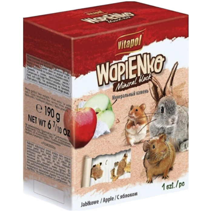 СКЛАД: Мінеральний камінь Vitapol Wapienko Mineral Block XL містить натуральні мінерали, яблуко, апельсин та джерела кальцію, магнію, фосфору та інших корисних речовин. Цей продукт створений без використання шкідливих хімікатів або заповнювачів.