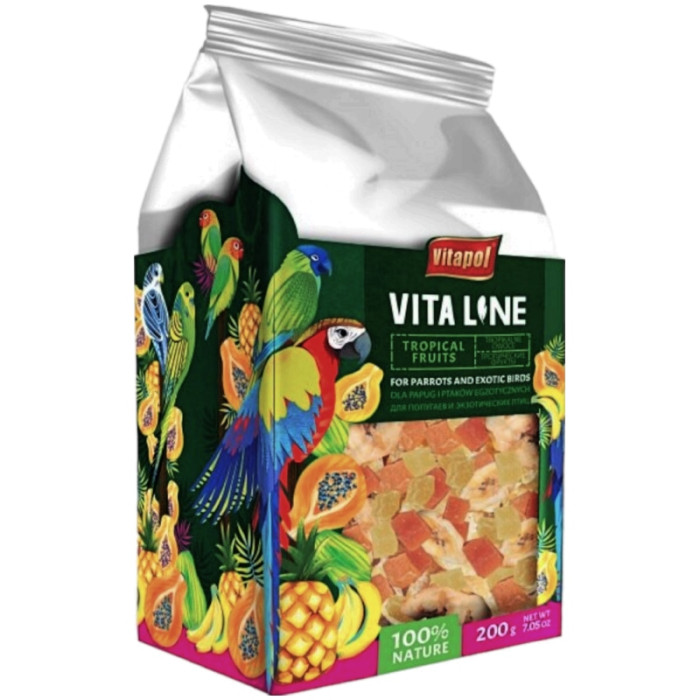 Корм для птахів Vitapol Vitaline Tropical Fruits тропічні фрукти є ідеальним вибором для вашої пернатої чирикальниці. Цей смачний і харчовий продукт містить комбінацію різних тропічних фруктів, які надають пташці необхідних поживних речовин і вітамінів. Він зроблений з натуральних інгредієнтів, що забезпечують збалансоване харчування вашої пташки. Корм має унікальну формулу, яка полегшує травлення і забезпечує оптимальну підтримку здоров'я пташки.