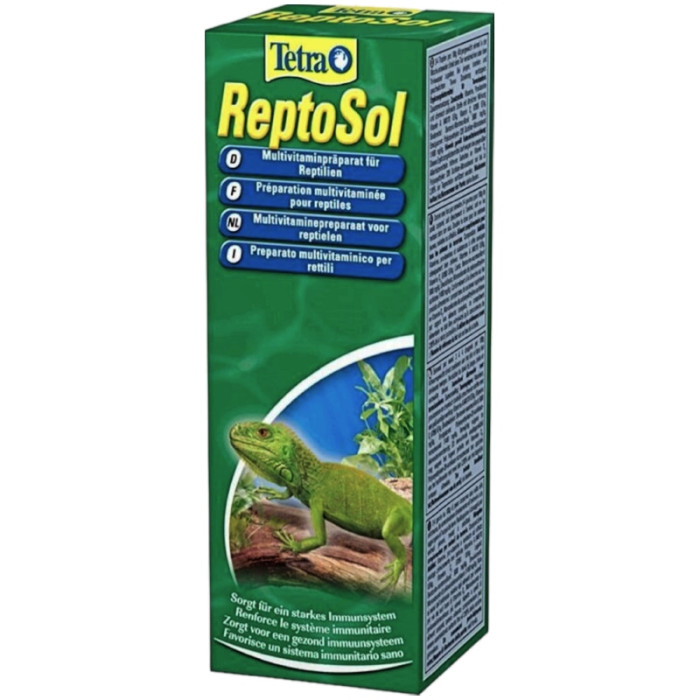 РЕКОМЕНДАЦІЇ: Рекомендується додавати 5-10 крапель Tetra ReptoSol до кормування вашої рептилії щодня. Перед використанням ретельно струсніть флакон. Зберігайте продукт у прохолодному та сухому місці, поза досяжністю дітей.