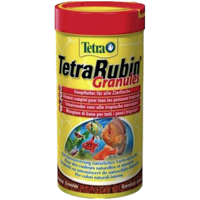 ОПИС: Корм для риб Tetra Rubin Granules - це ідеальне харчування для вашого акваріума. Цей корм містить всі необхідні речовини для здорового росту і розвитку риб. Гранули легко переварюються і швидко опускаються на дно акваріума, що підтримує натуральне харчування риб. Крім того, Tetra Rubin Granules має чудовий смак, який безпосередньо приваблює акваріумних мешканців. Купуйте корм для риб Tetra Rubin Granules і насолоджуйтесь красою і здоров'ям своїх риб.